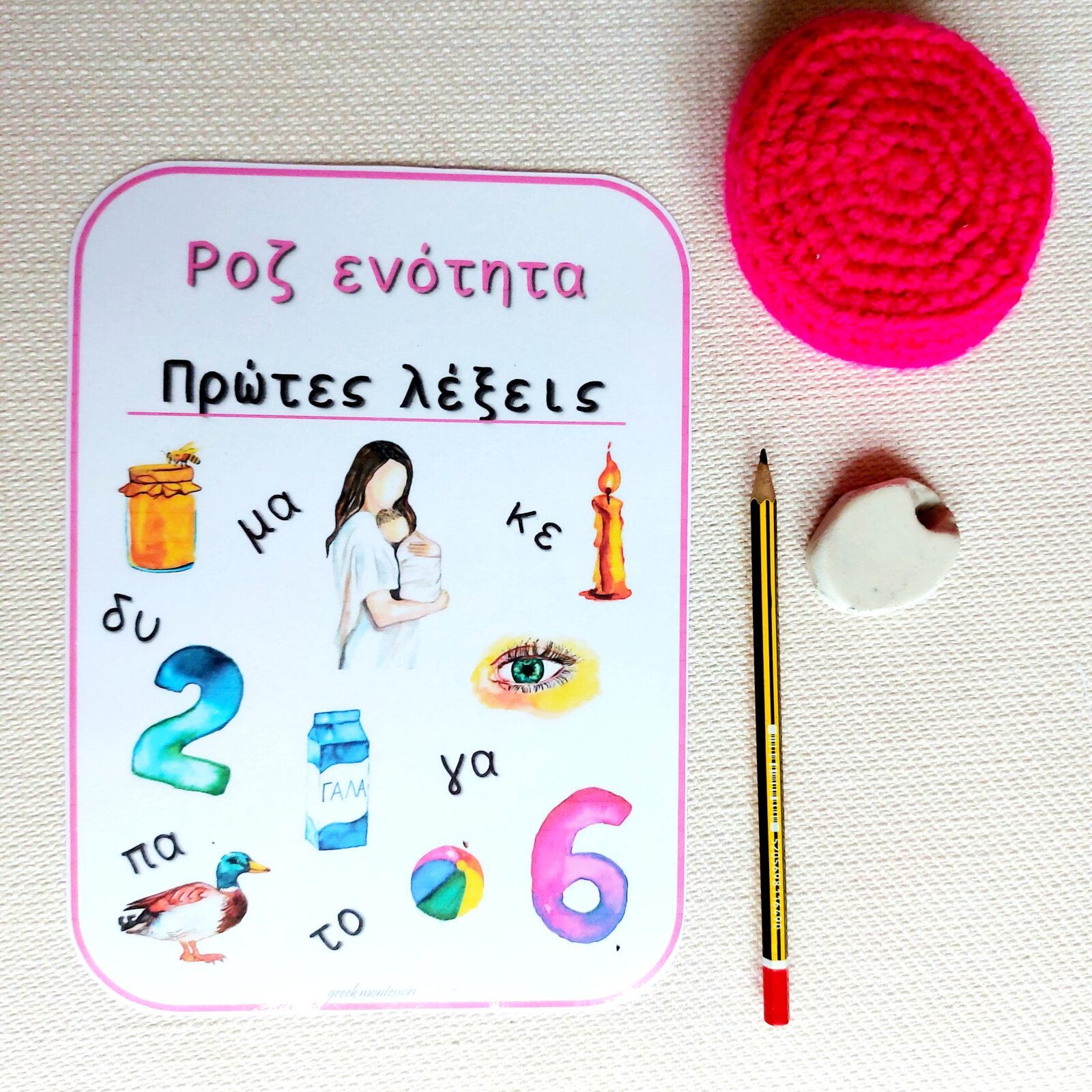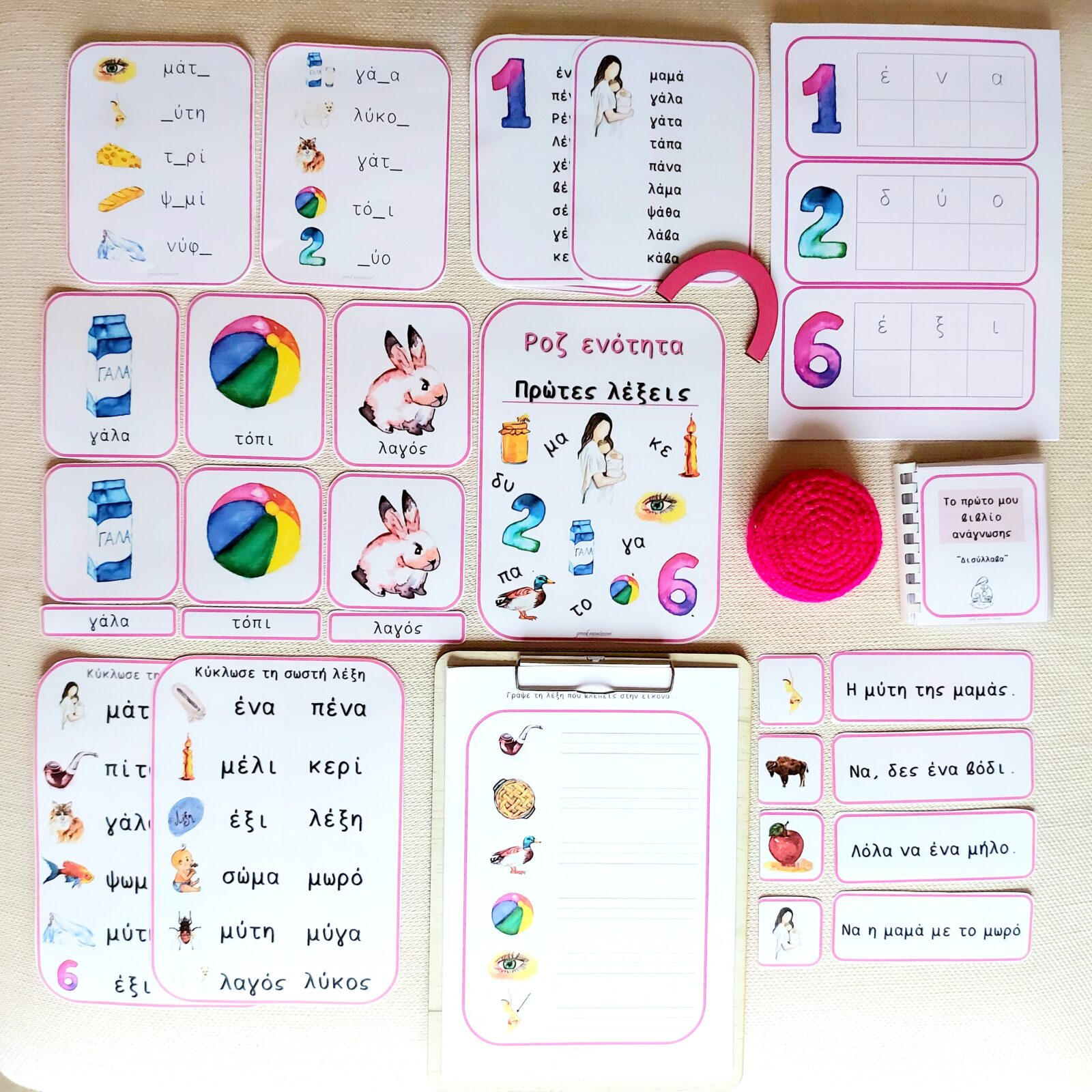 Η ροζ ενότητα αποτελεί εξαιρετικό εργαλείο ανάγνωσης για τα παιδιά από 4 έως 6-6μιση ετών. Αφορά τις ελληνικές λέξεις της πρώτης ανάγνωσης.