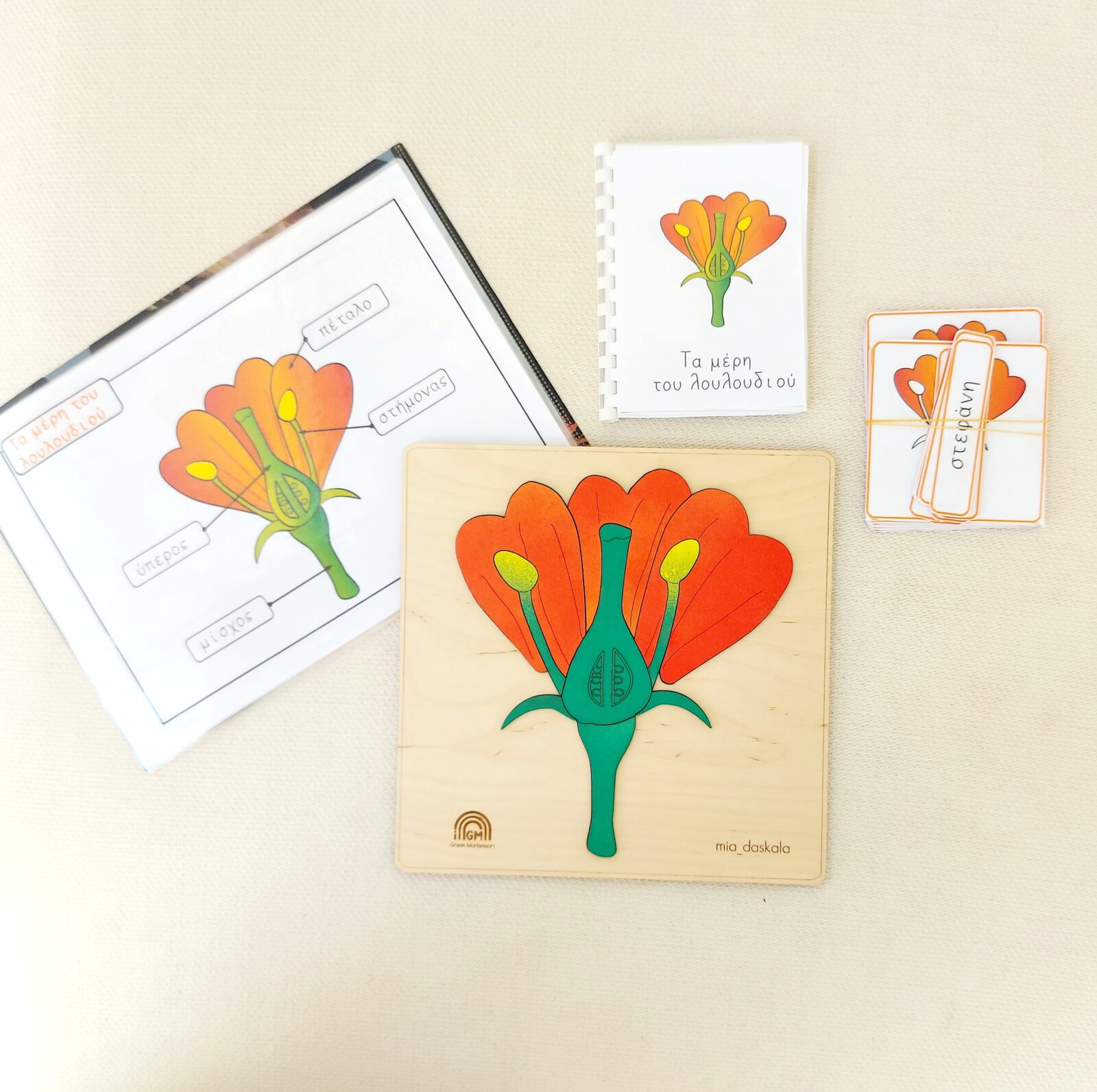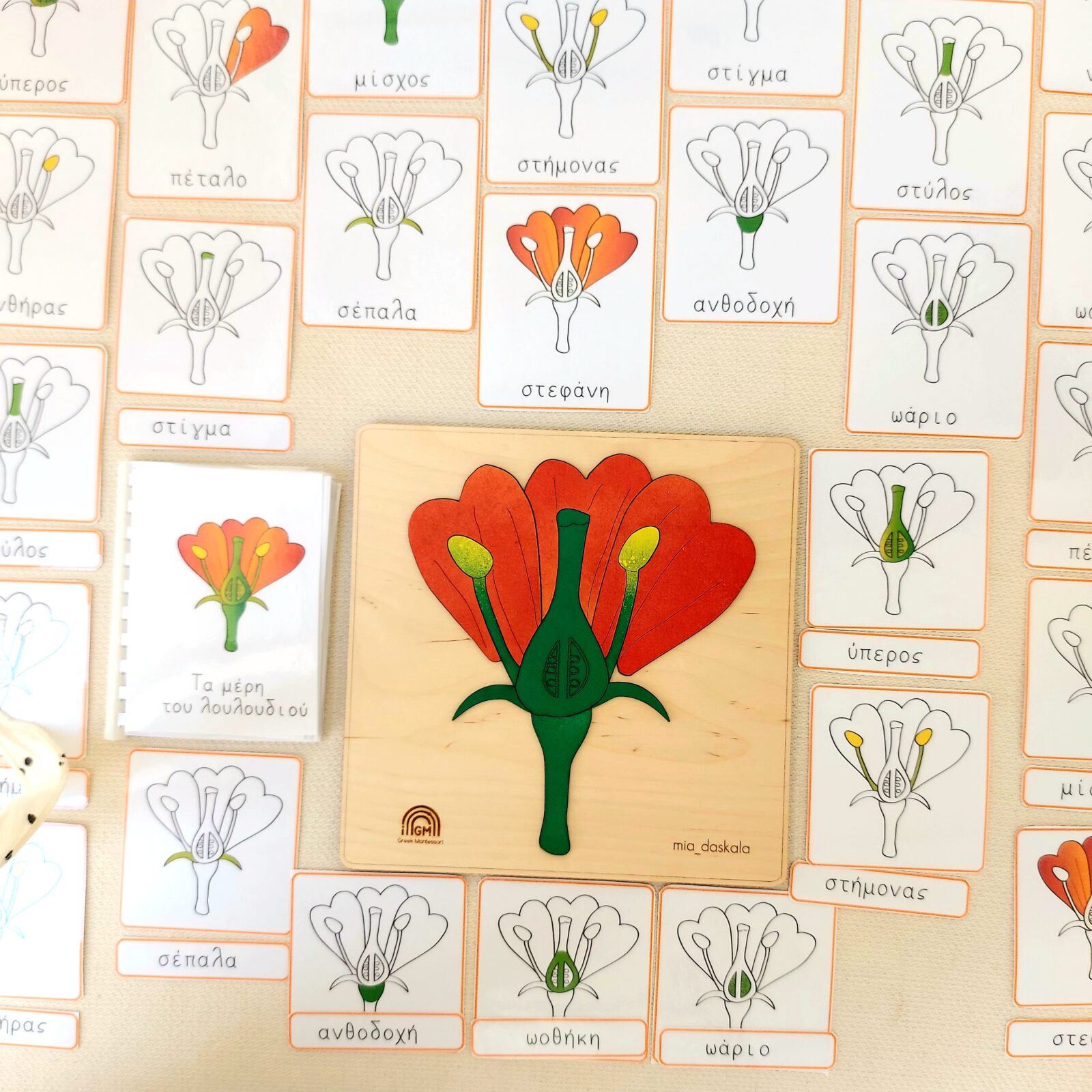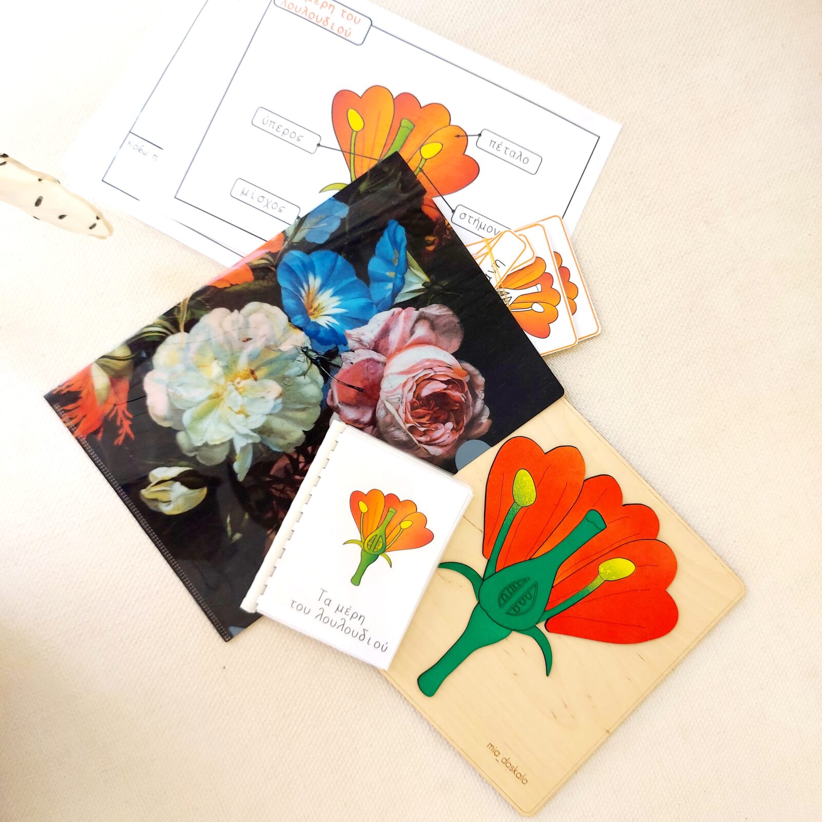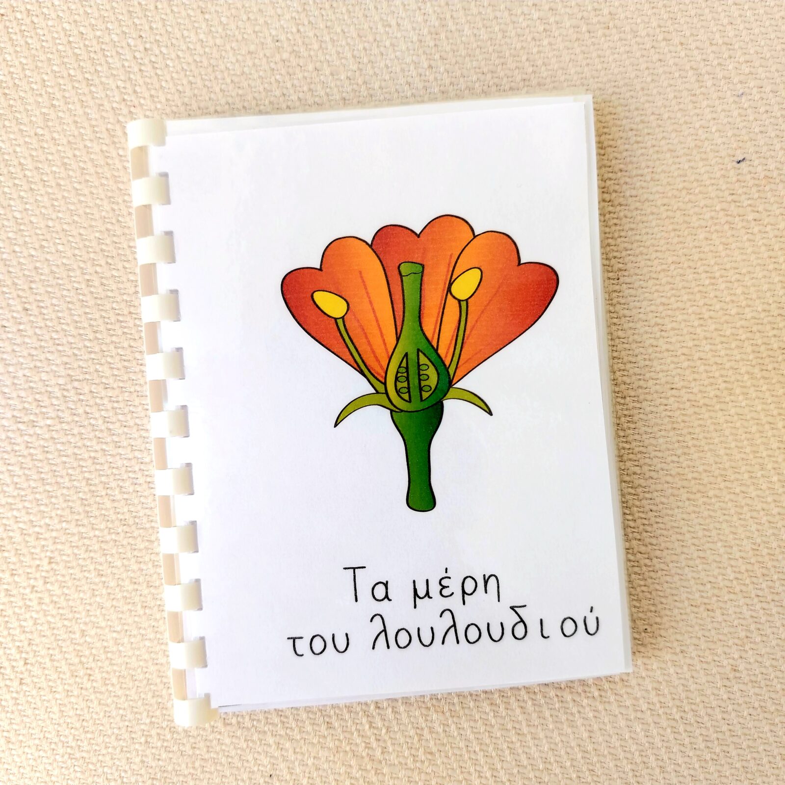 2. Βιβλιαράκι, με όλα τα μέρη του λουλουδιού, όπου περιγράφεται συνοπτικά κάθε μέρος του