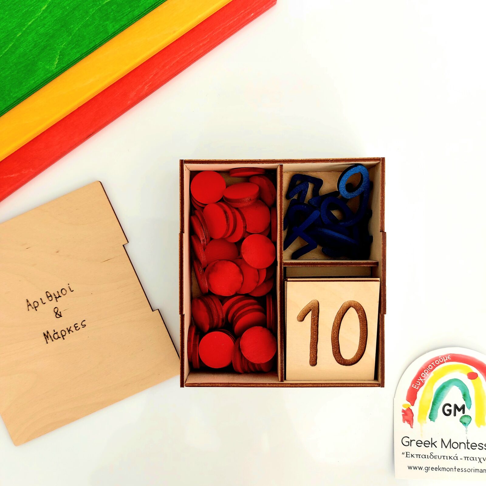 Περιέχει 10 ξύλινες πλάκες με αριθμούς 1-10