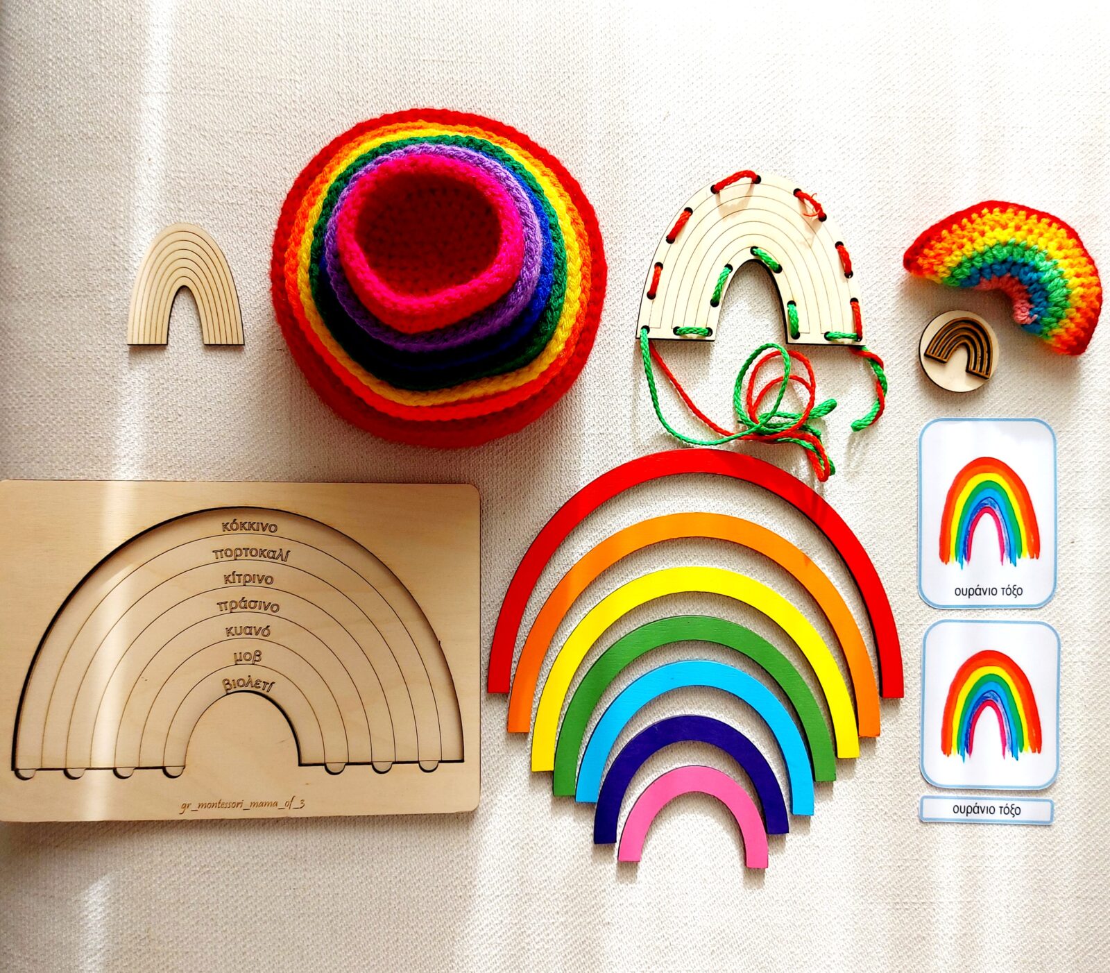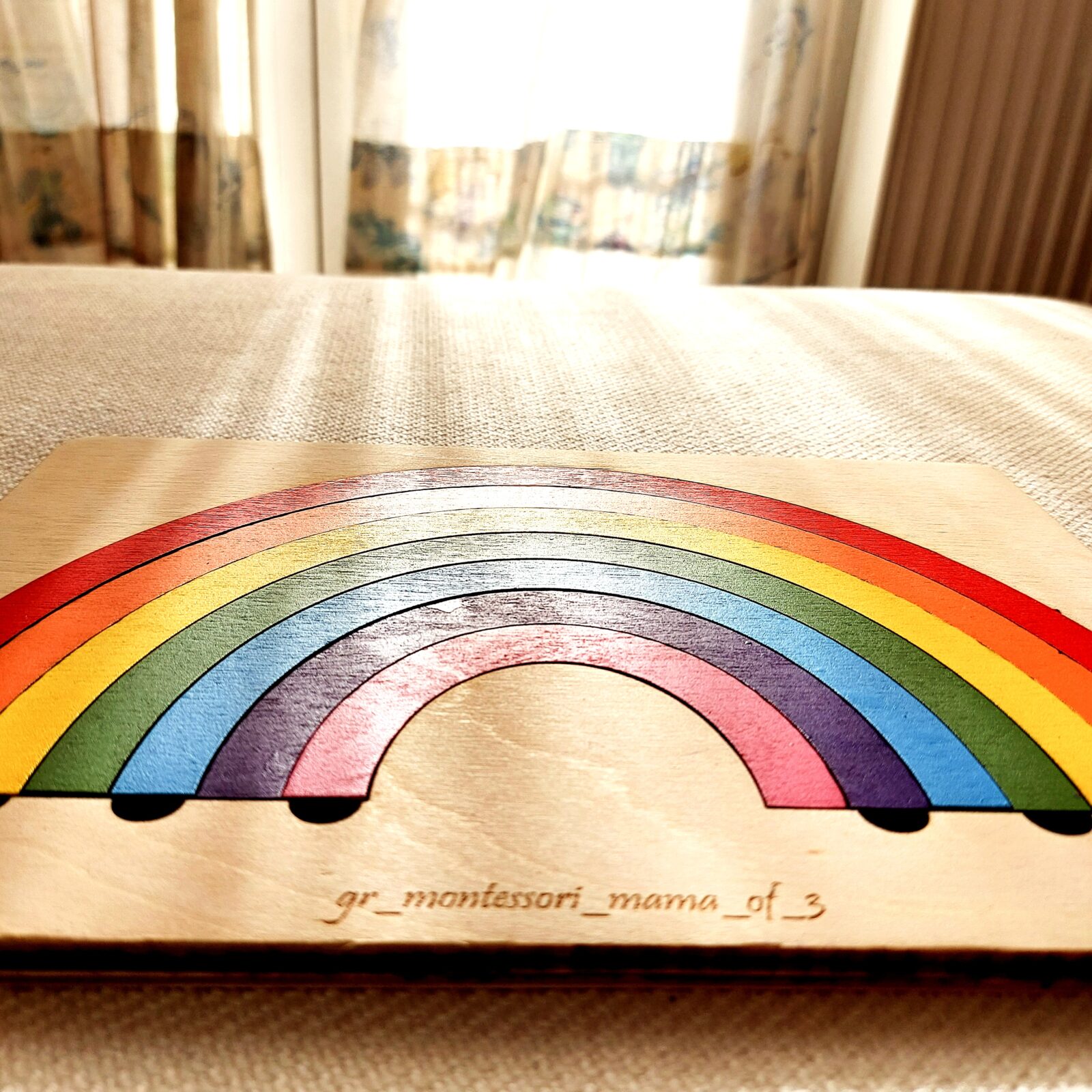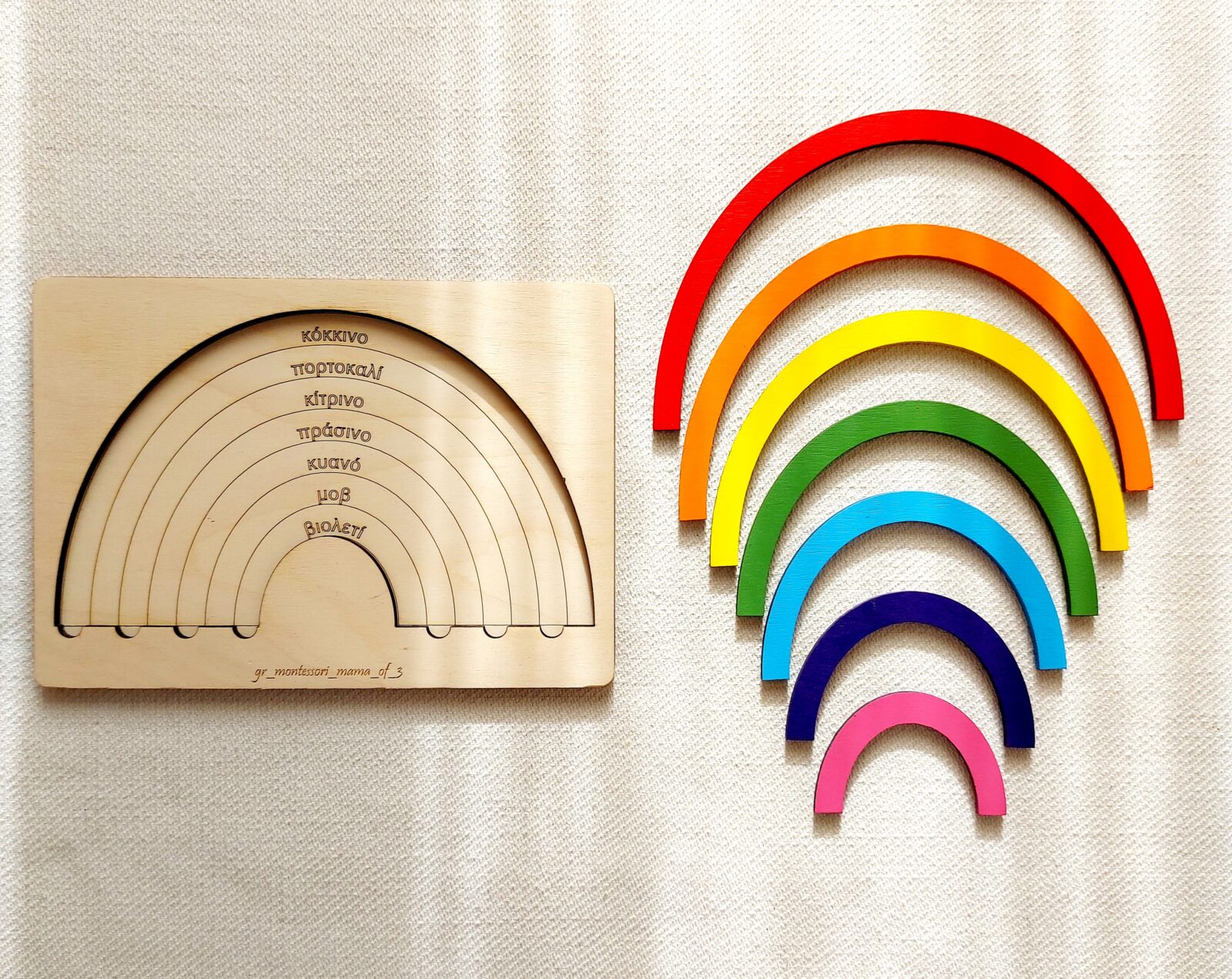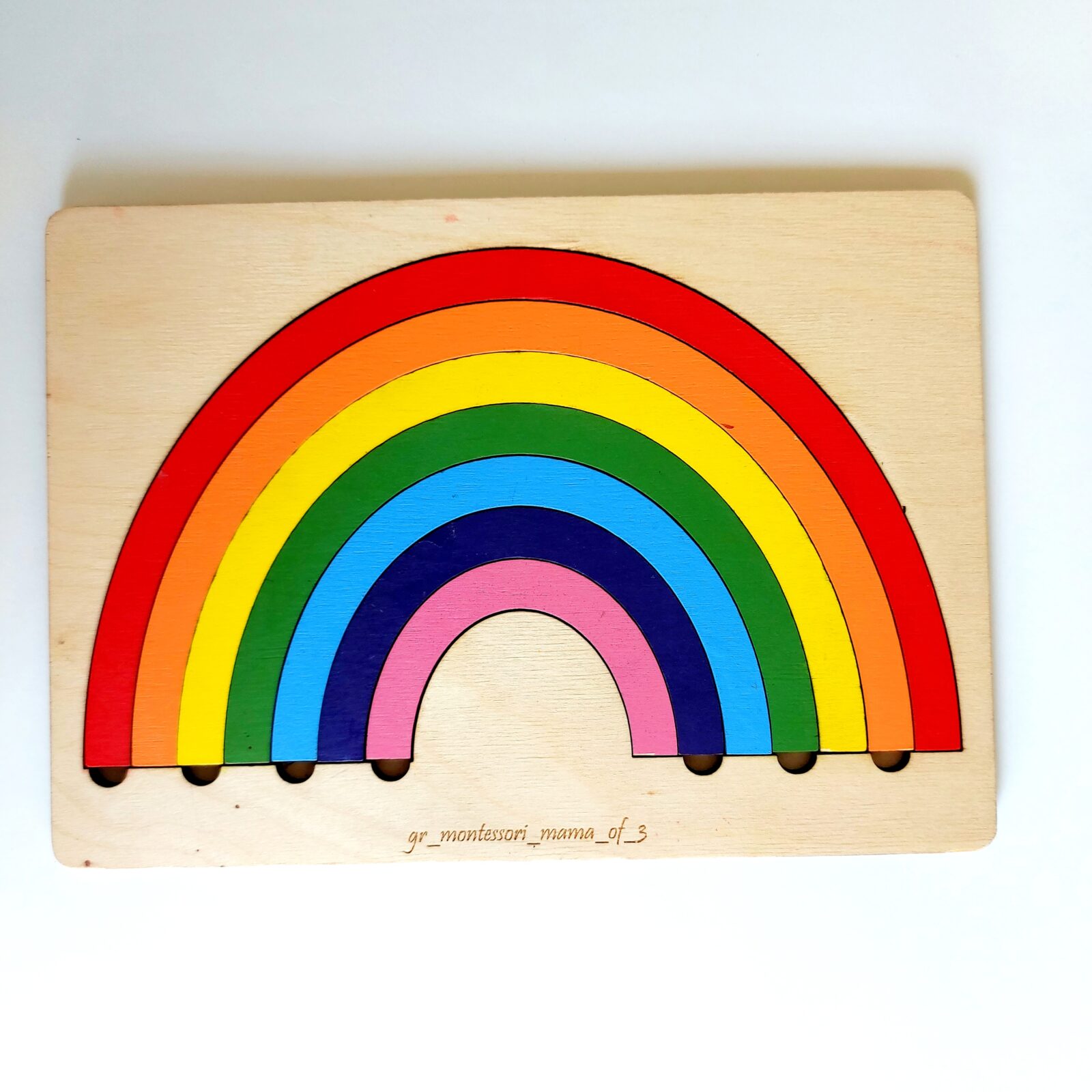 Το παζλ του ουράνιου τόξου εποτελεί ξύλινο εκπαιδευτικό υλικό κατάλληλο για παιδιά από 3 ετών και αποσκοπεί στην εκμάθηση των χρωμάτων της ίριδας (ουράνιου τόξου)