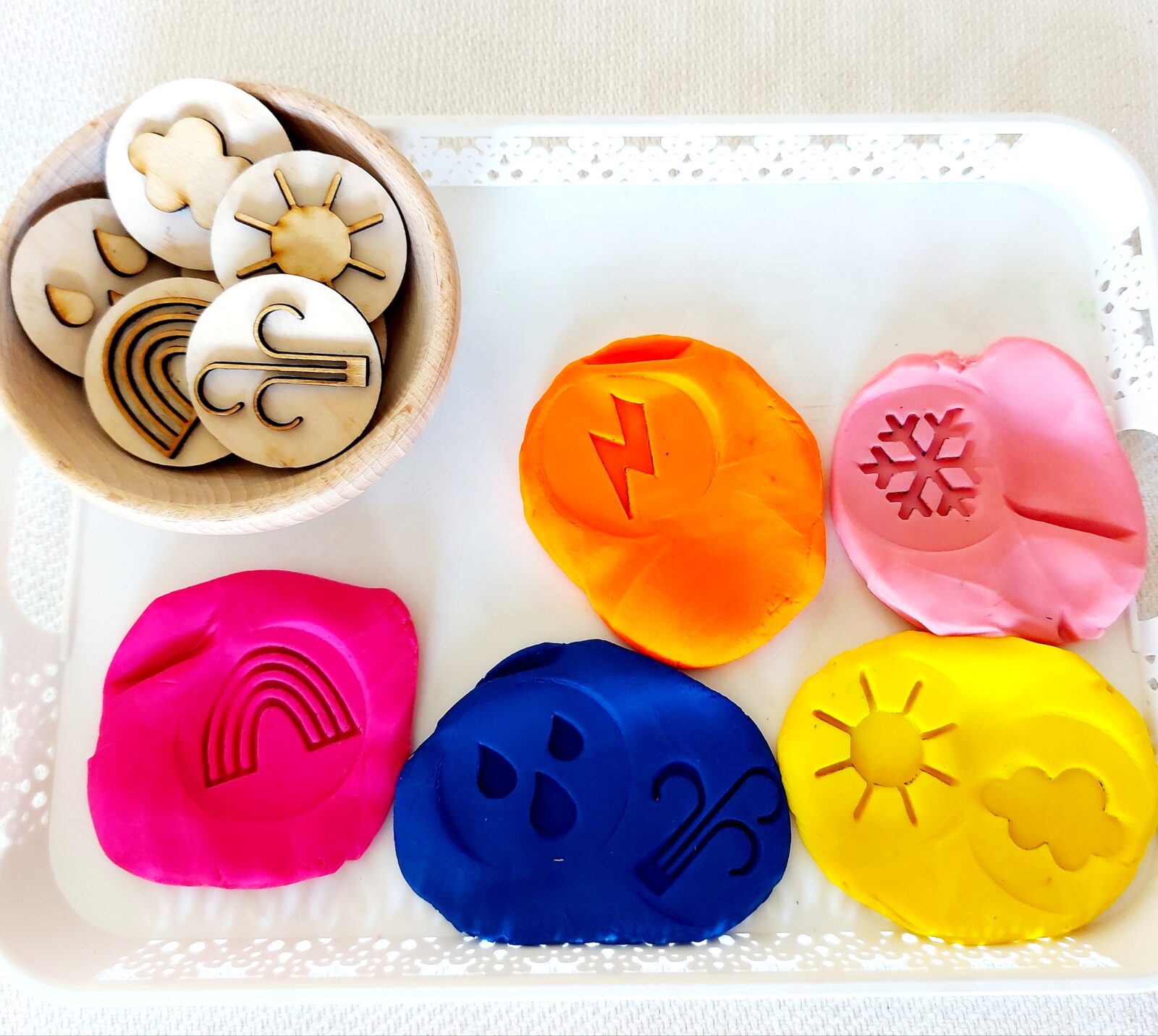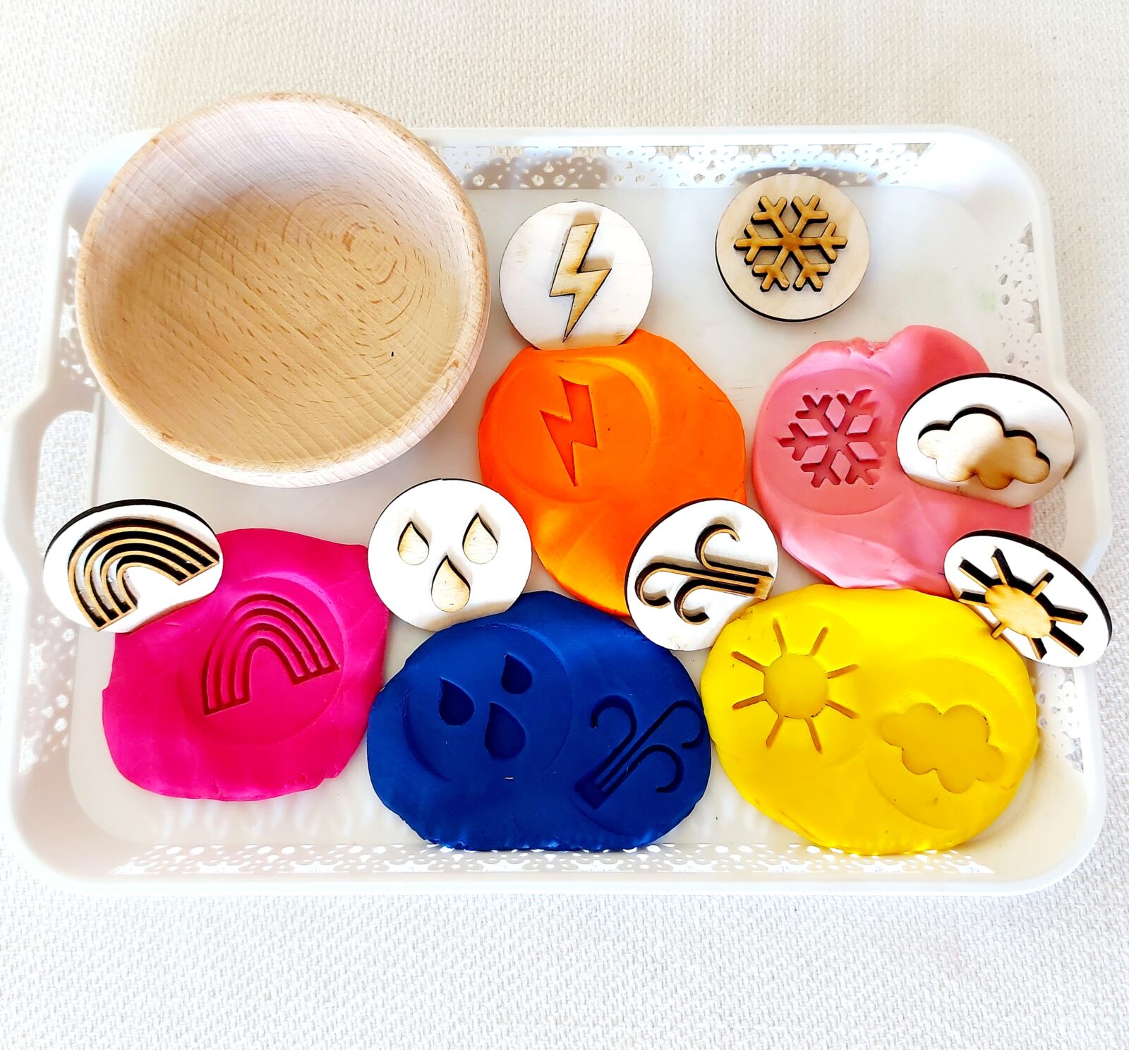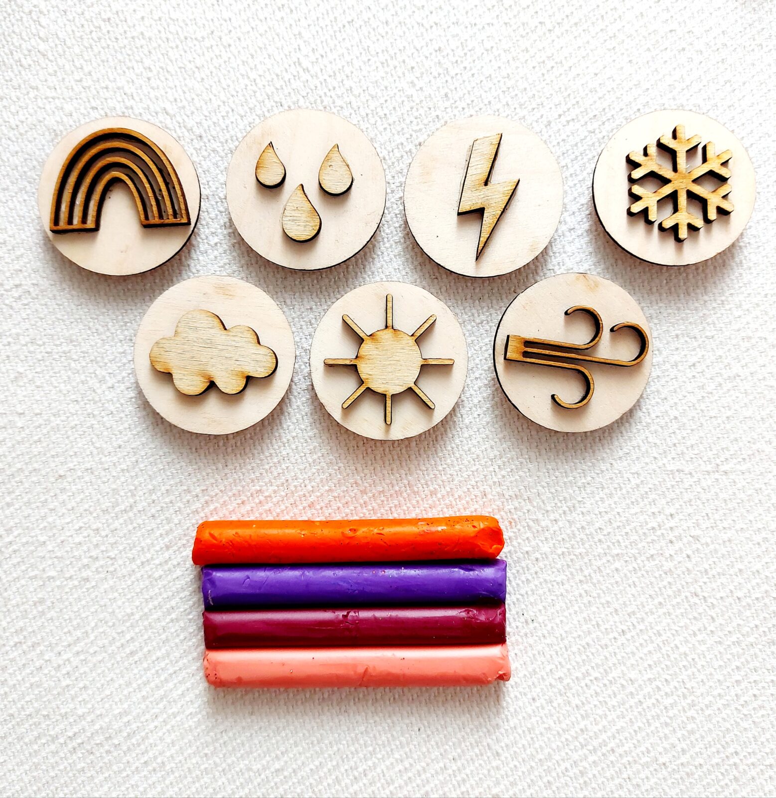 7 σφραγίδες, κάθε σφραγίδα και ένα καιρικό φαινόμενο, για παιχνίδι με πλαστελίνη.