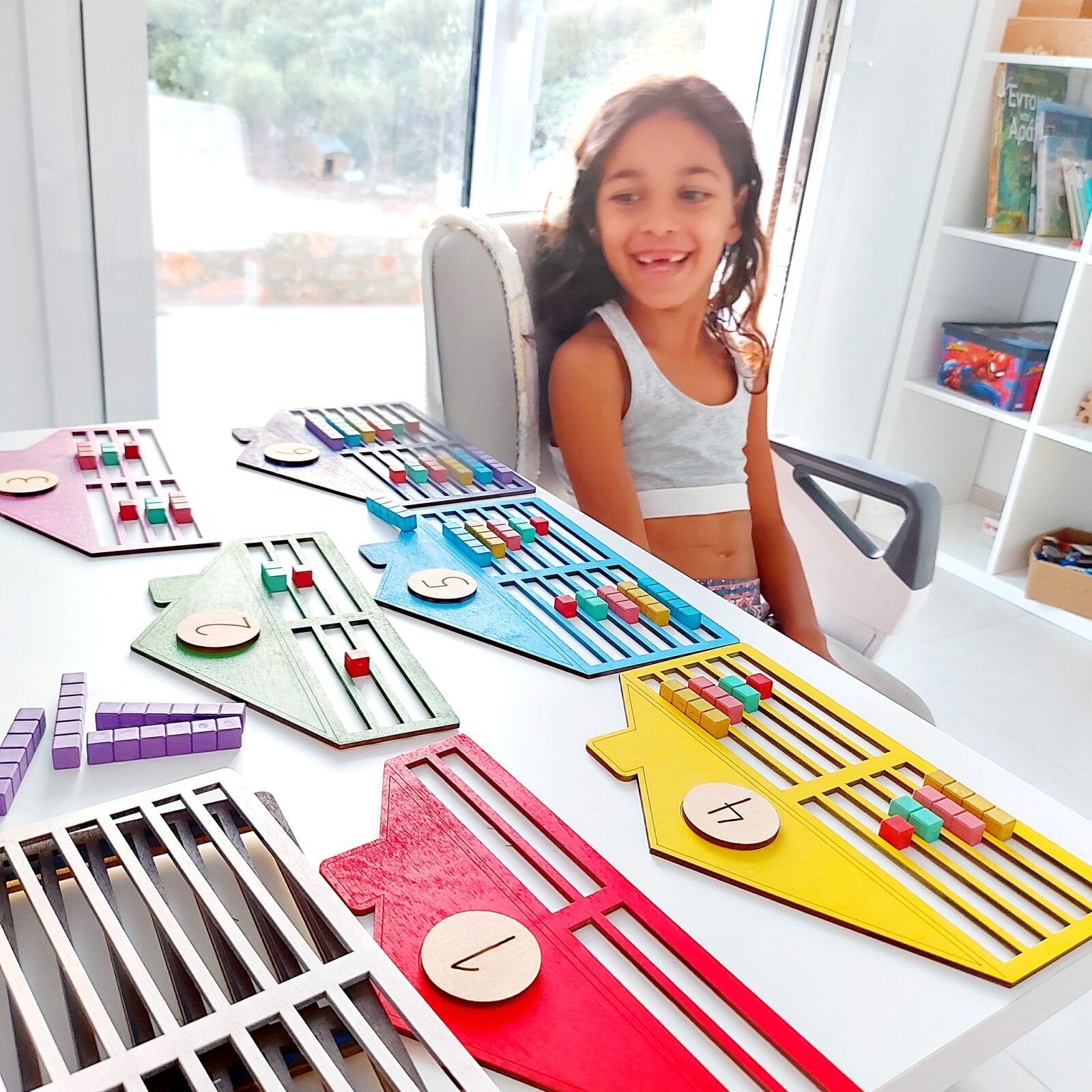 Αποτελείται από 10 σπιτάκια όπου κάθε αριθμός έχει τον αντίστοιχο αριθμών διαχωριστικών +1 για να τοποθετήσετε εκεί το μετρήσιμο υλικό (ράβδους ή χάντρες ή ξυλάκια).