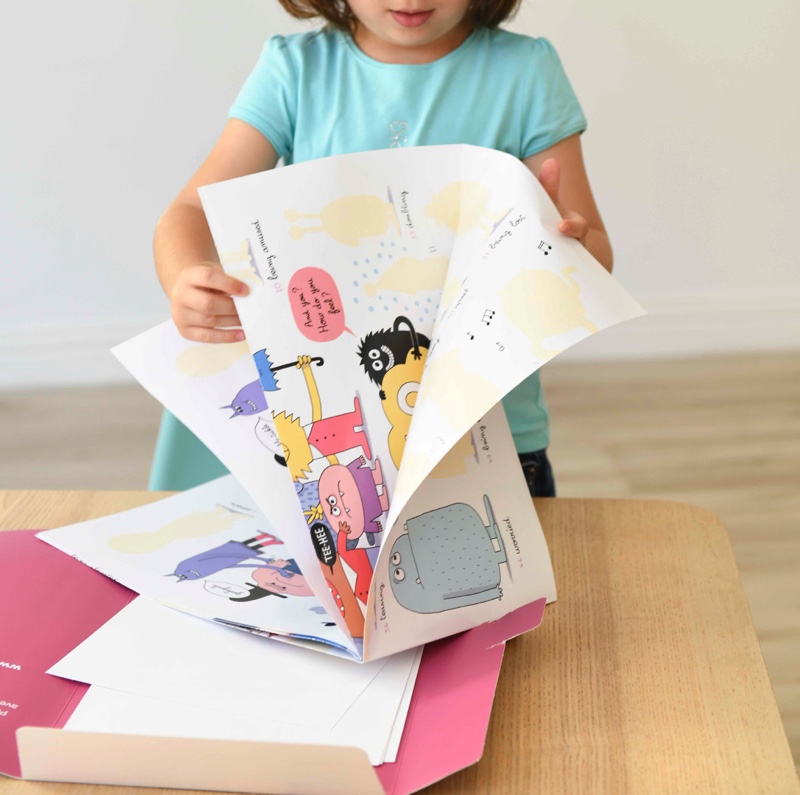 Ξεδιπλώστε το μεγάλο πόστερ, κολλήστε τα 43 επανατοποθετούμενα αυτοκόλλητα και ανακαλύψτε τον μαγικό κόσμο των συναισθημάτων.