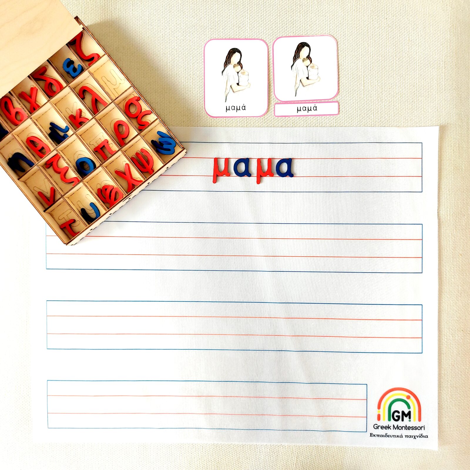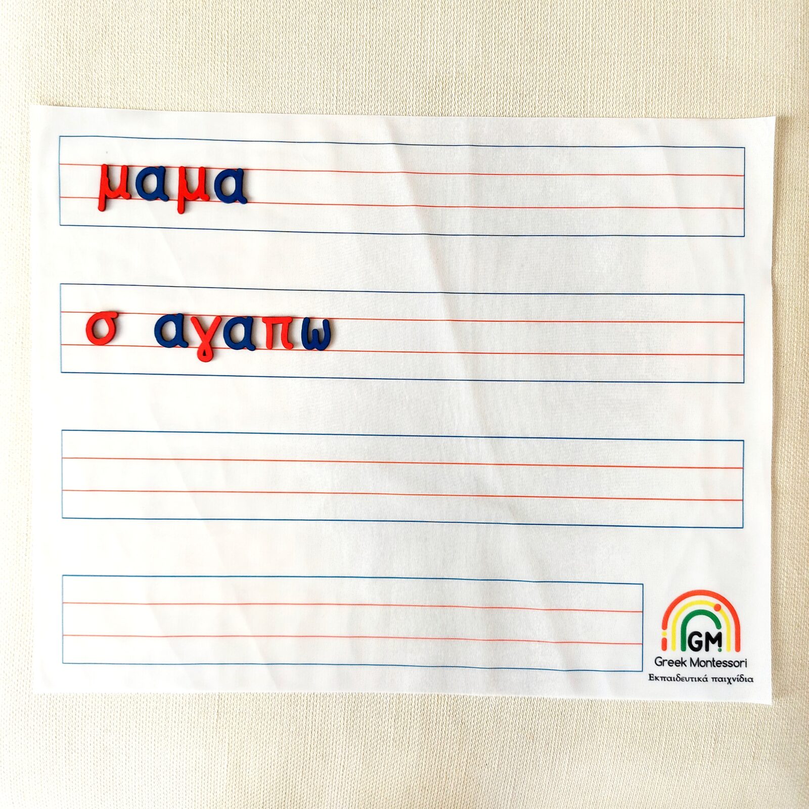 Το χαλάκι για την κινητή αβ είναι ένα ειδικά σχεδιασμένο χαλάκι με γραμμές όπου το παιδί τοποθετεί τα γράμματα της κινητής αβ για να σχηματίσει λέξεις.